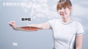 比如「腕伸肌」(手腕伸直肌),讓你把手腕往上翹起來;