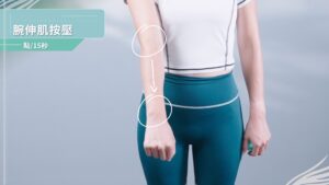 最上面從手肘摺線接近身體外側的位置開始,一路往下按到手腕關節的地方。