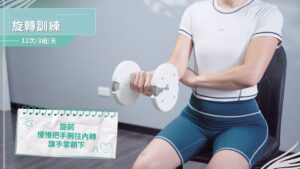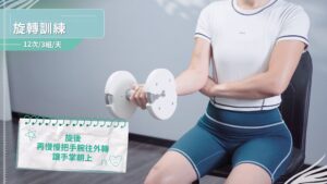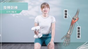 把手臂往外旋,再往內旋,反覆3次,一路往下做到手腕關節,一天一組。